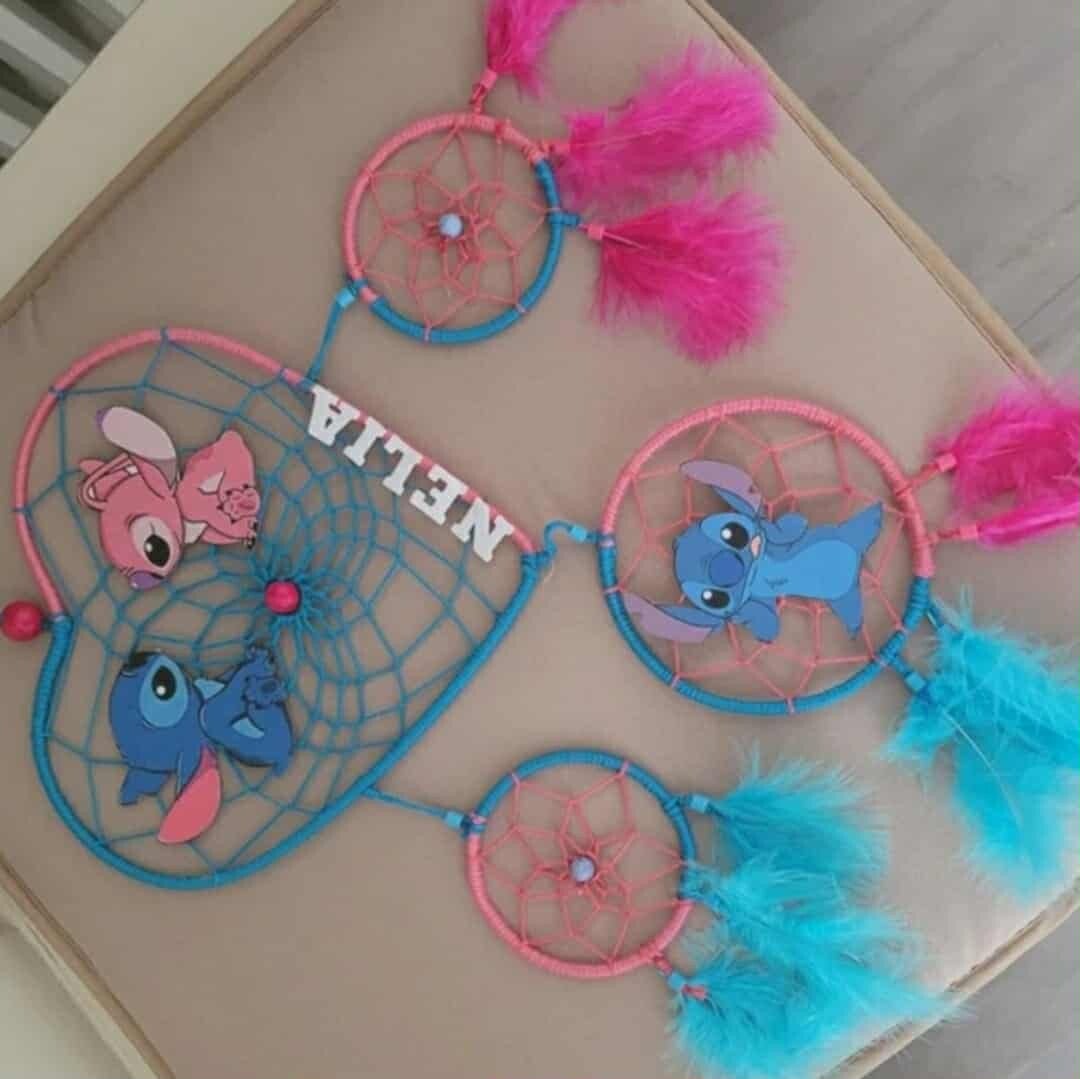 Attrape-Rêves Stitch en Forme de Cœur – Personnalisé avec 1 ou 2 Prénoms
